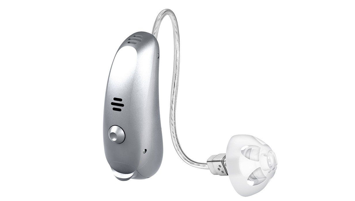 Aparelho auditivo recarregável e inteligente, o Stellar RIC 8C agora tem Transmissão Direta de Áudio via Bluetooth® e o recurso Minha Voz para um som melhorado da sua própria voz..